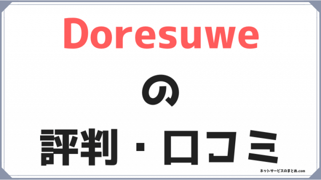 ネットサービスDoresuwe(ドレスウェ)とは?情報・評判・口コミを集めました。 2018年9月9日 ヒキ子 https://xn--o9jl2cn0xya2ewb4bydzz.com/wp-content/uploads/2018/10/ネットサービスのまとめ.com_.png ネットサービスのまとめ